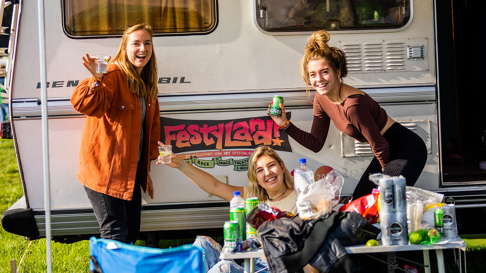 Wil jij niet in een tent slapen? Er is ook plek voor caravans en campers, maaaar ze mogen niet groter zijn dan 18m2 (6 x 3m). Hier heb je wel een speciaal caravan/camper ticket voor nodig.